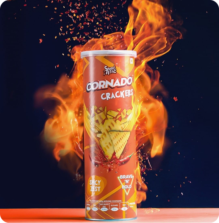 The snacking aisle is a battlefield—brands fighting for attention, shelves packed with choices, and consumers making quick decisions. Cornado SnacAtac needed packaging that didn’t just sit there but stood out, grabbed attention, and boosted recall—all while keeping marketing spend low.